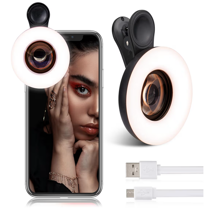 - Built-In LED Ring Light: Three light modes (warm, cool, daylight) with adjustable brightness for flawless shots anywhere.